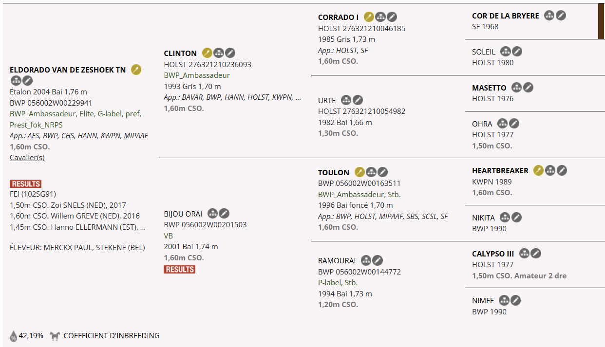 11e meilleur père de gagnants en CSI au classement WBFSH en 2025, 8e en 2022, labellisé Preferent par le Stud-book KWPN et ambassadeur BWP, il est père des performers en CSI :