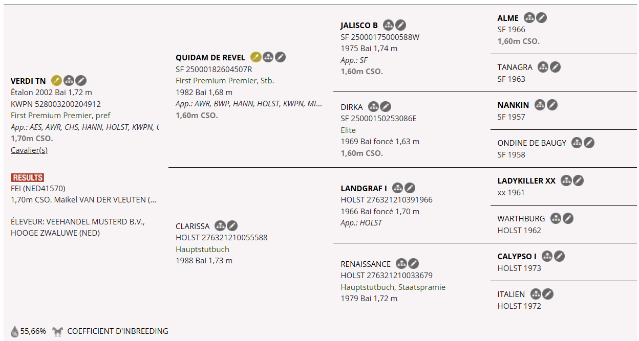 « Verdi est un étalon hors norme à tout point de vue. Il a mené de front sa carrière d'étalon et une incroyable carrière sportive, glanant les plus beaux titres au monde : vice-champion olympique, champion du monde, champion d'Europe, multiples vainqueur en Coupe des nations et étapes Coupe du monde, finaliste en Coupe du monde...